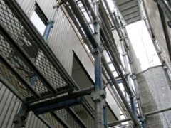 足場内は養生メッシュシートの囲いで蒸し暑く大変でした。