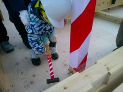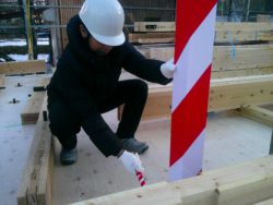 お施主様に建物周りの清祓いと紅白柱を建てて頂き、